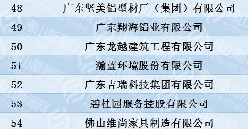 翔海鋁業入榜2019佛山企業100強