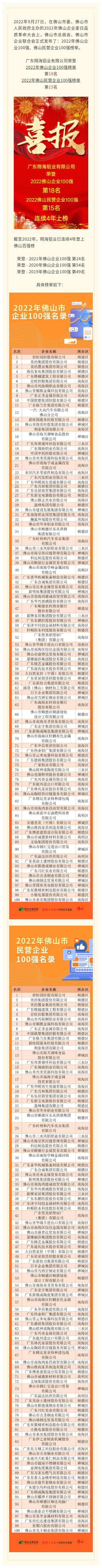 喜报|广东翔海铝业有限公司荣登2022佛山企业百强榜18名